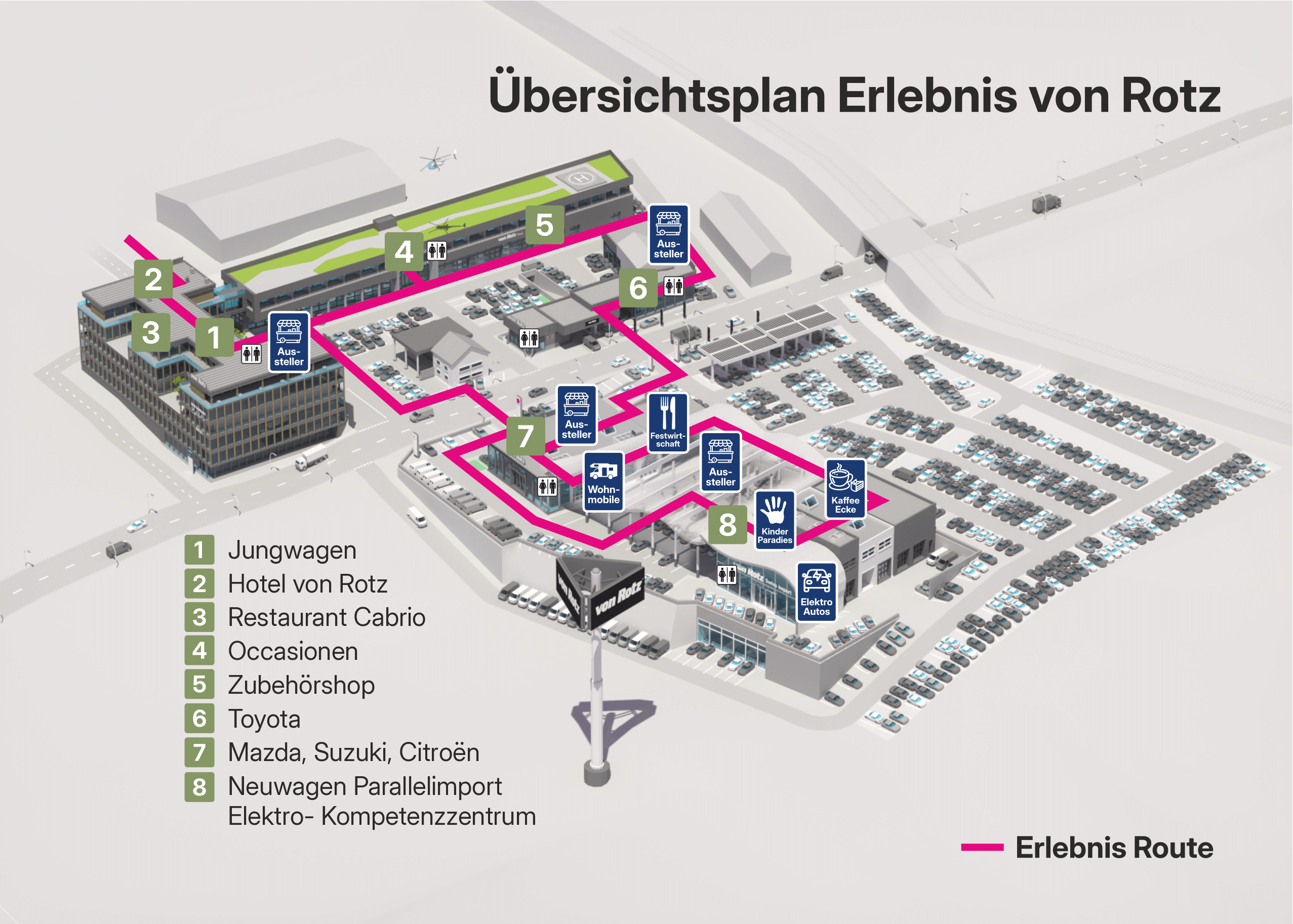 Das ultimative Erlebnis für Autofans. An unserer neu konzipierten Ausstellung erleben Sie nahe zu 1000 Fahrzeuge hautnah – inklusive den neusten Modellen von über 20 Marken. Es erwarten Sie 600 Neufahrzeuge (davon +200 Elektroautos), 300 Occasionen sowie das motivierte von Rotz Team